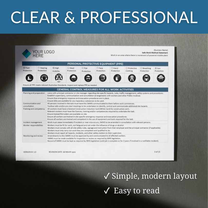 Meet your legal obligations and keep your worksites safe with a Safe Work Method Statement (SWMS).