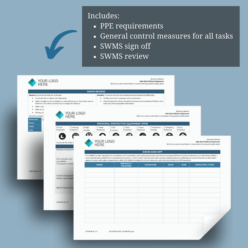 This SWMS works well in conjunction with our Working at Heights SWMS (for detailed controls when EWPs are in use). For enquiries, customisations, or tailored SWMS solutions, do not hesitate to contact us.